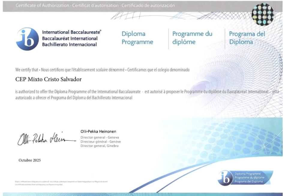 Brindamos una educación humanista cristiana que promueve la indagación, creatividad e interculturalidad y contamos con la autorización para impartir el Programa del Diploma y el Programa de Años Intermedios de la Organización del Bachillerato Internacional.