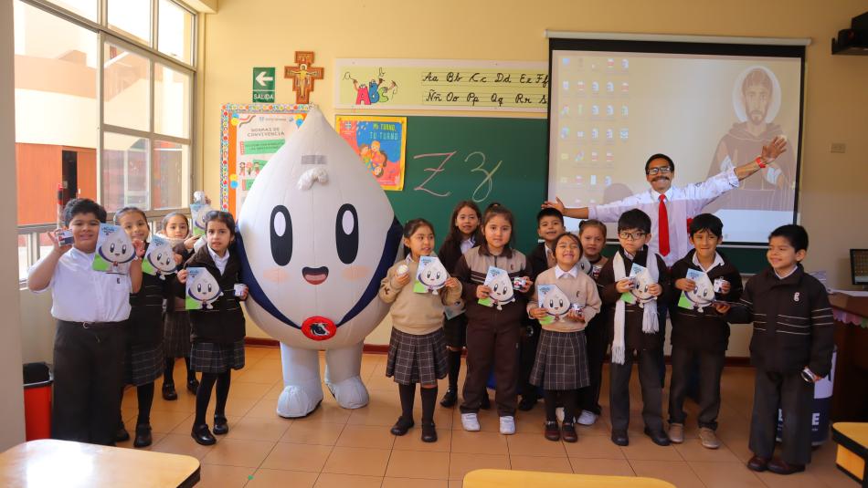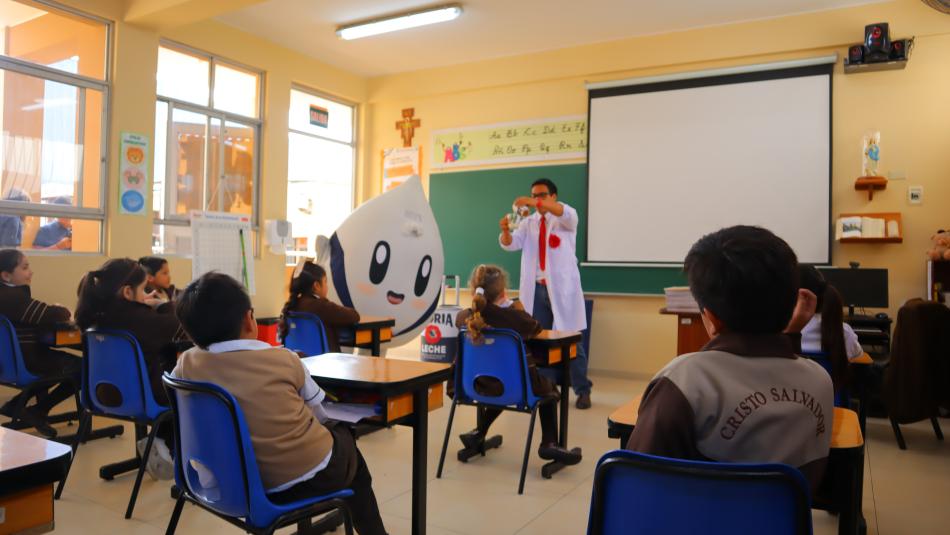 Nuestros estudiantes de Inicial (3, 4 y 5 años) y de 1° y 2° grado de primaria, recibieron con mucha alegría la visita especial de Leche Gloria y la gotita Mili. 🐄💧